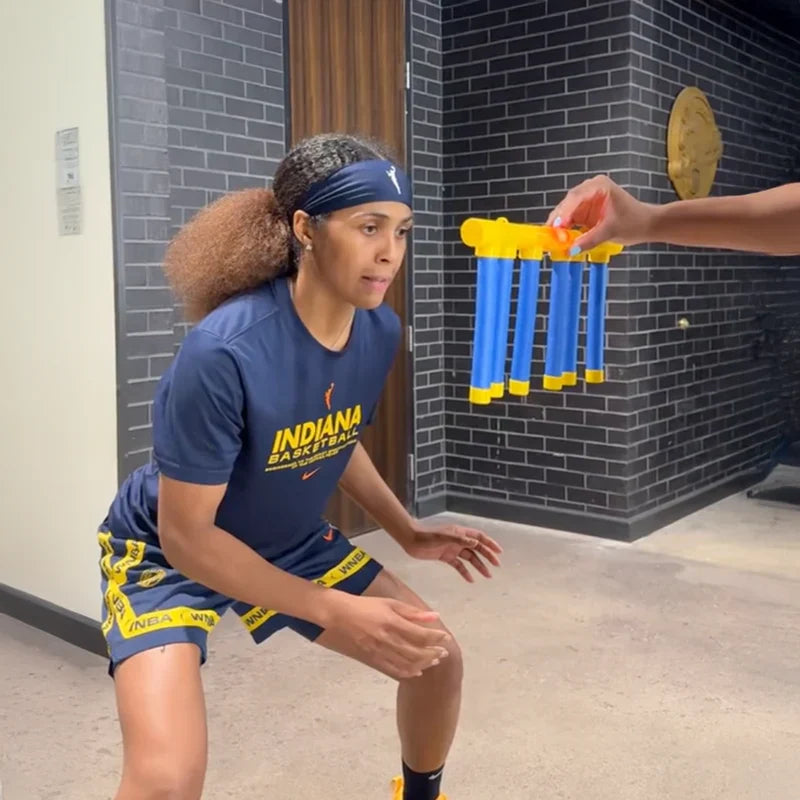 This reaction training toy is made of high-quality material, it is durable, and not easy to break. The sticks are made of environmentally friendly EVA, and rounded edges, are comfortable to touch, and will not cause injury. The baton game is easy to install, no tools are needed to complete the installation.