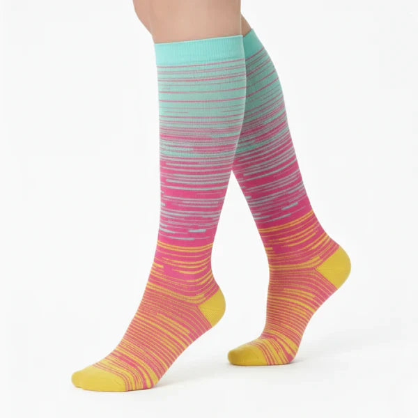 Our compression socks use a graduated compression of 15-20mmHg, offering the perfect balance of support and relief without feeling too tight.