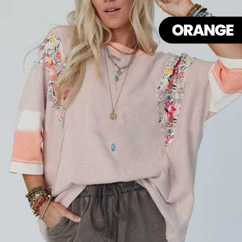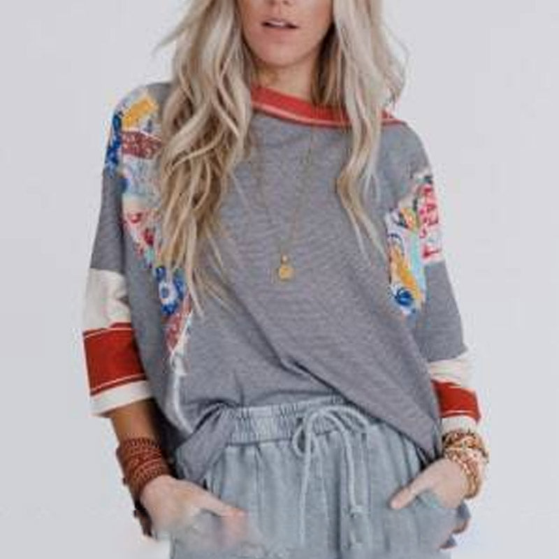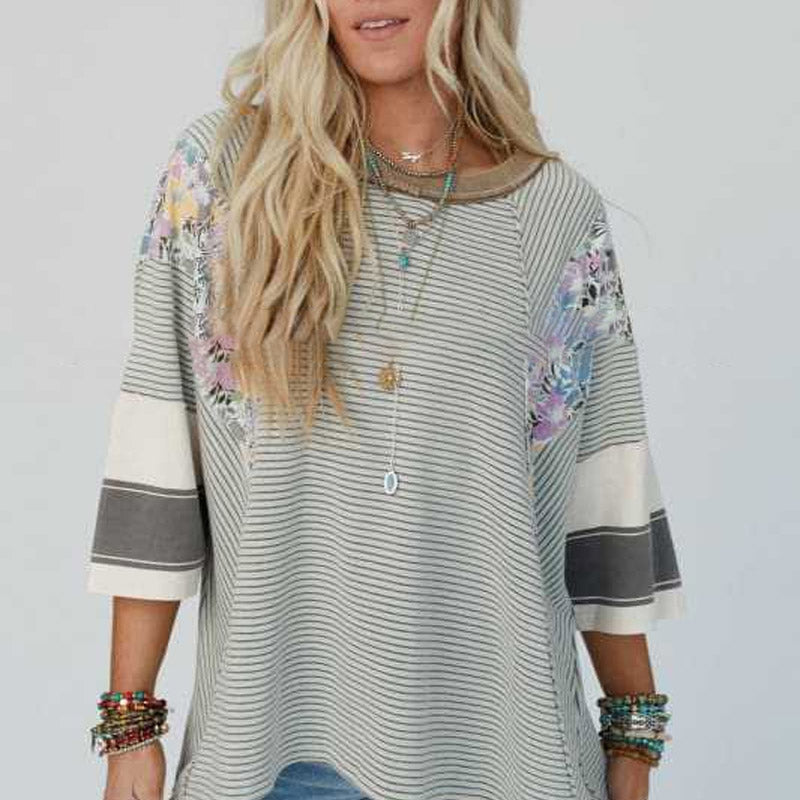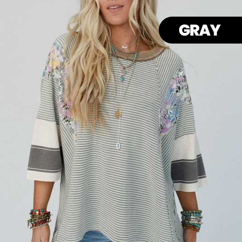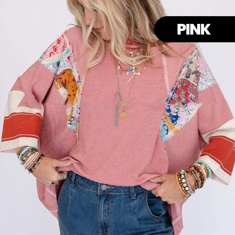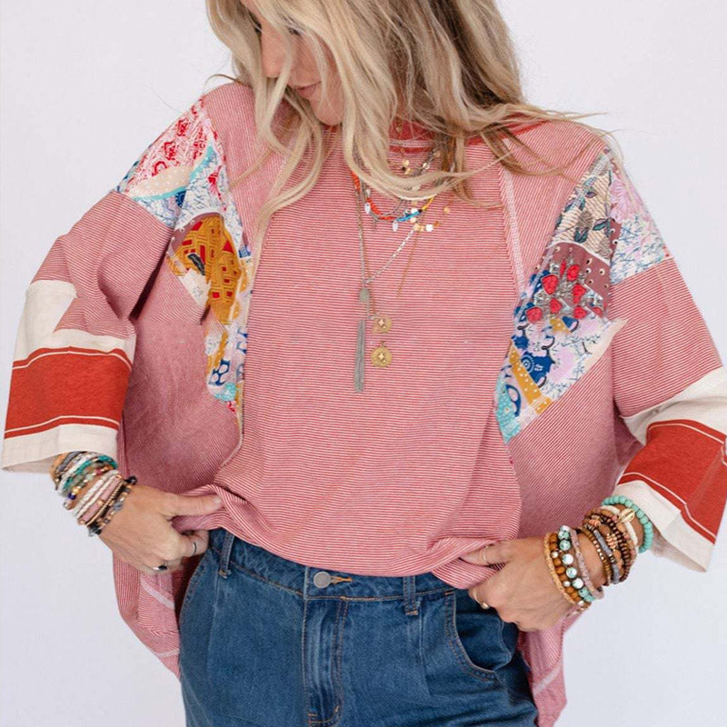 🍂Autumn Sales 49% OFF🔥Women's Batwing 3/4 Sleeve Stripe Patchwork Blouse