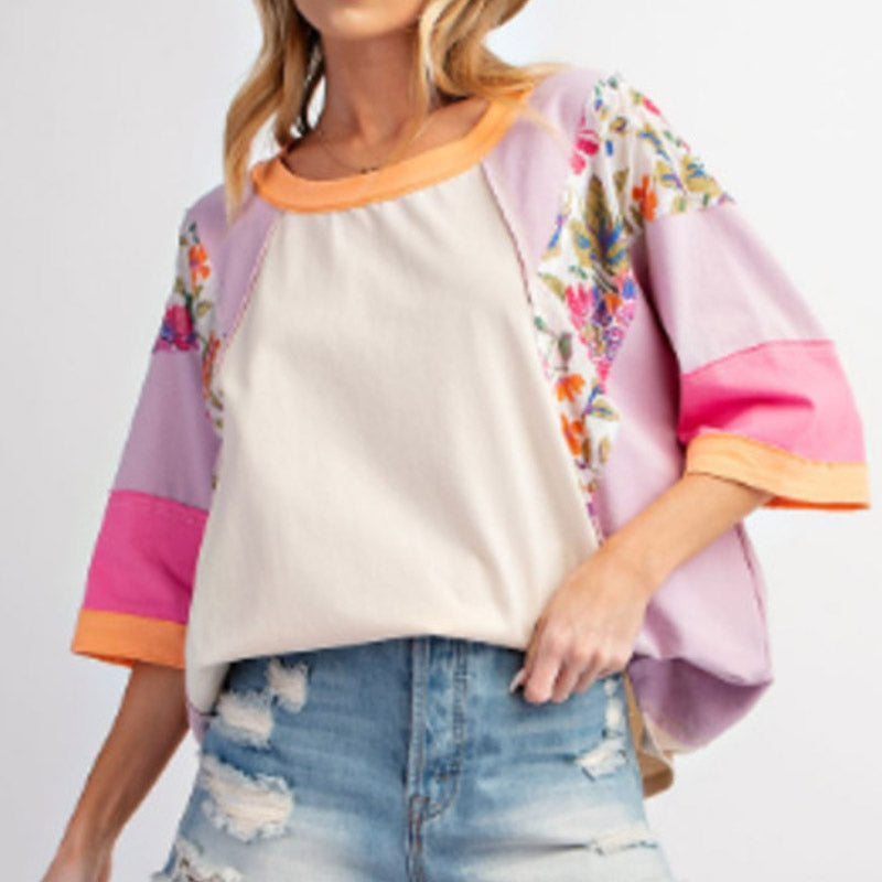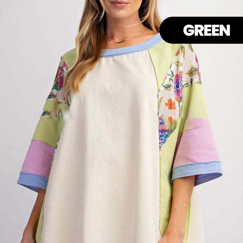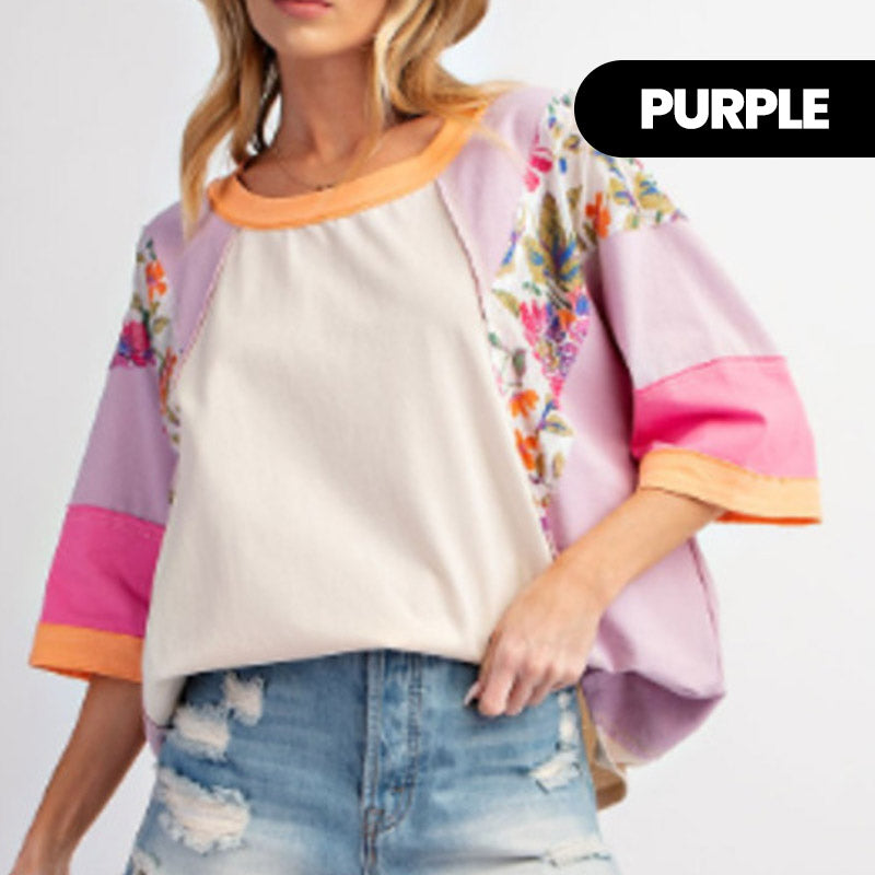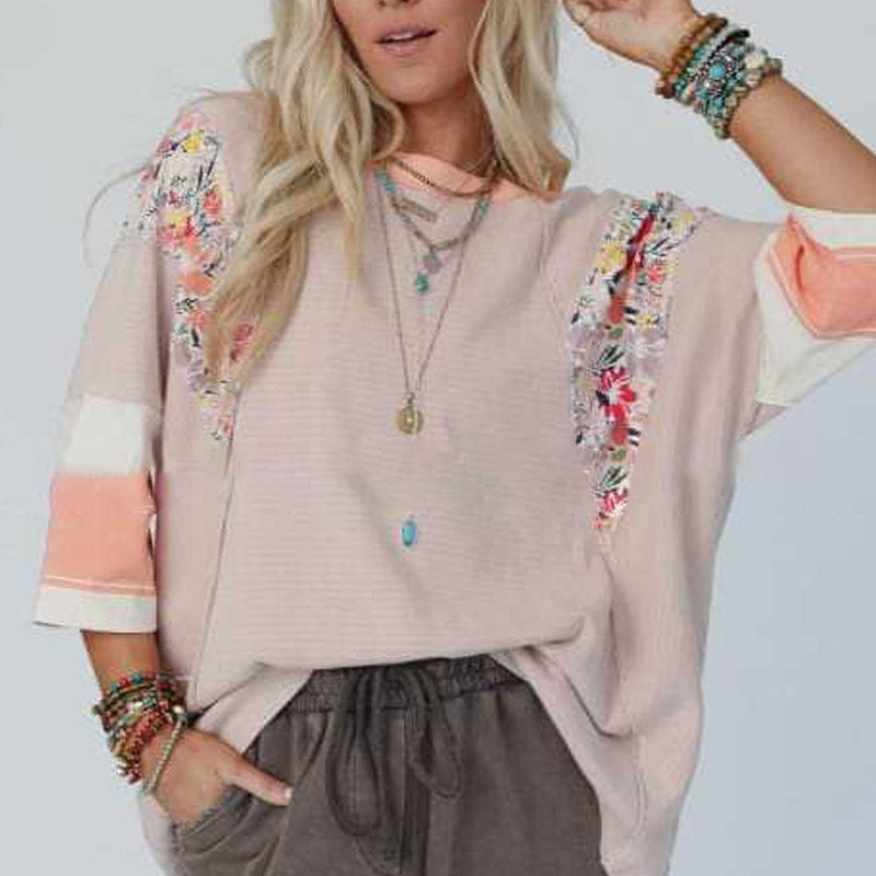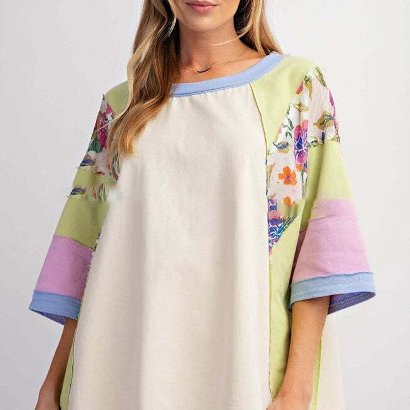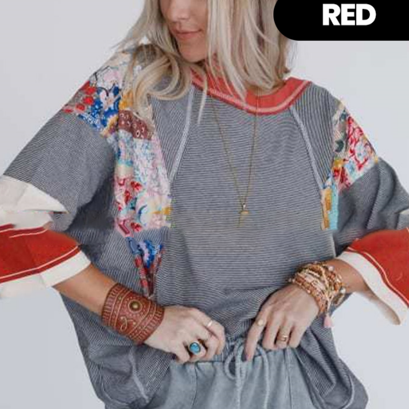 Package Includes:1*Women's Batwing 3/4 Sleeve Stripe Patchwork Blouse