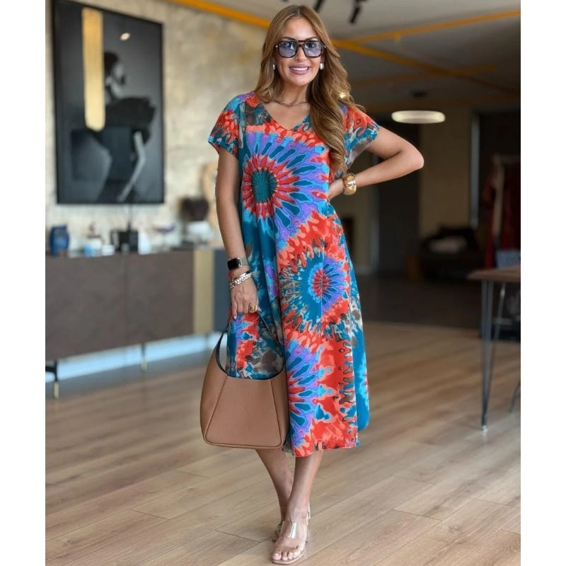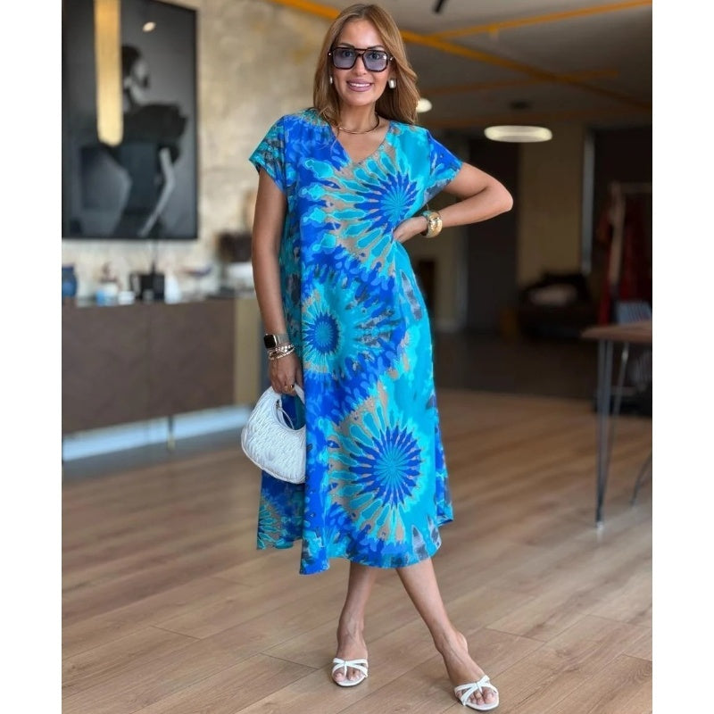 ⏳Time-limited Special 60%OFF⏰Women's Casual V-Neck Printed Maxi Dress