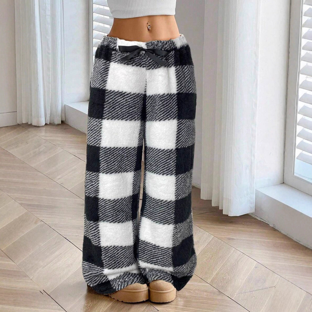 🎅LAST DAY SALE 50% OFF🔥Winter Vintage Plaid Elastic Straight Loose Thick Warm Casual Pants