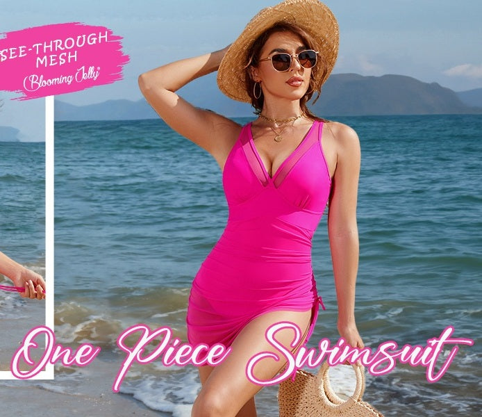 The women one piece swimsuit features a mesh sheer v-neck and sarong wraps that provide a stylish and sexy look. The tummy control and ruched design flatter your figure, combining modesty with a touch of sexiness